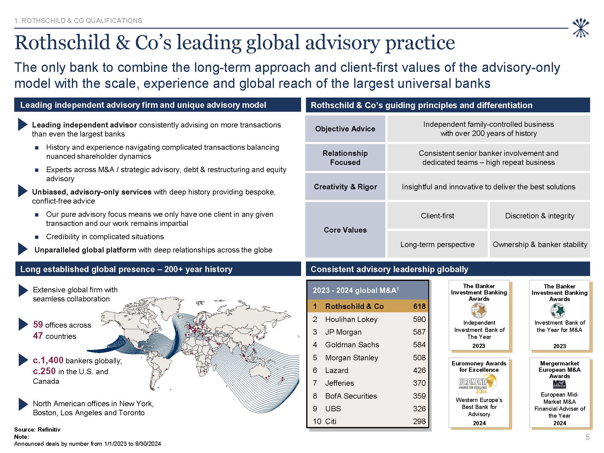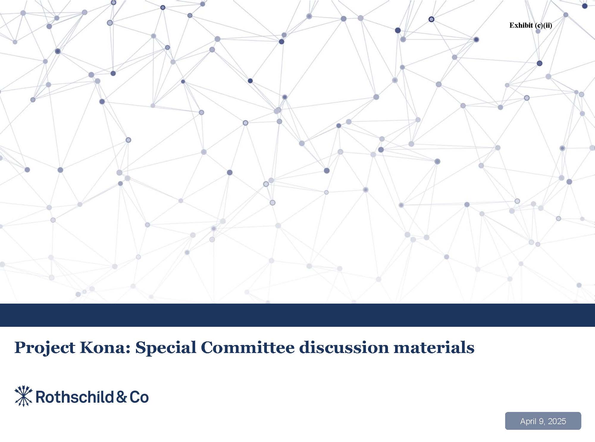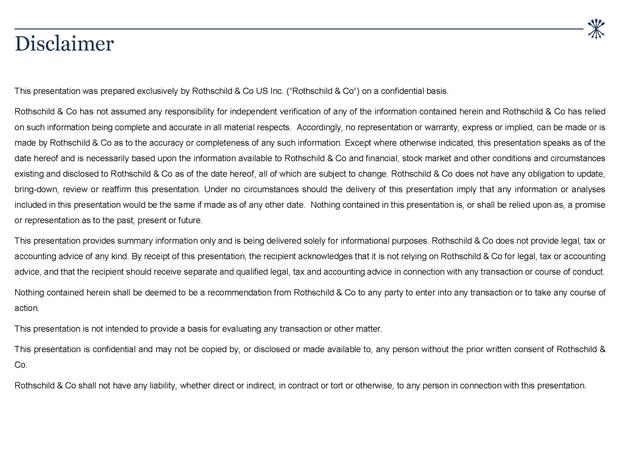 & Co as of the date hereof, all of which are subject to change. Rothschild & Co does not have any obligation to update, bring-down, review or reaffirm this presentation. Under no circumstances should the delivery of this presentation