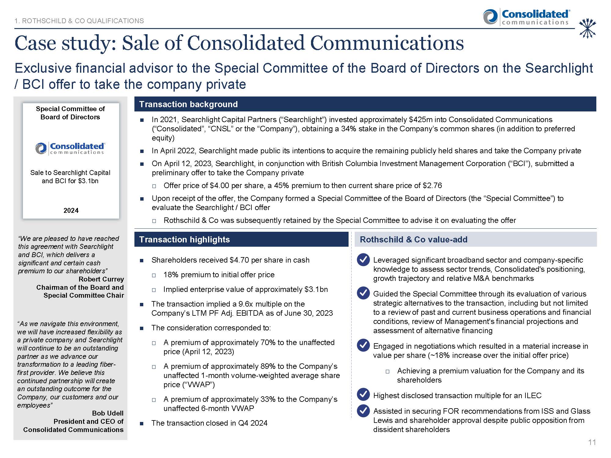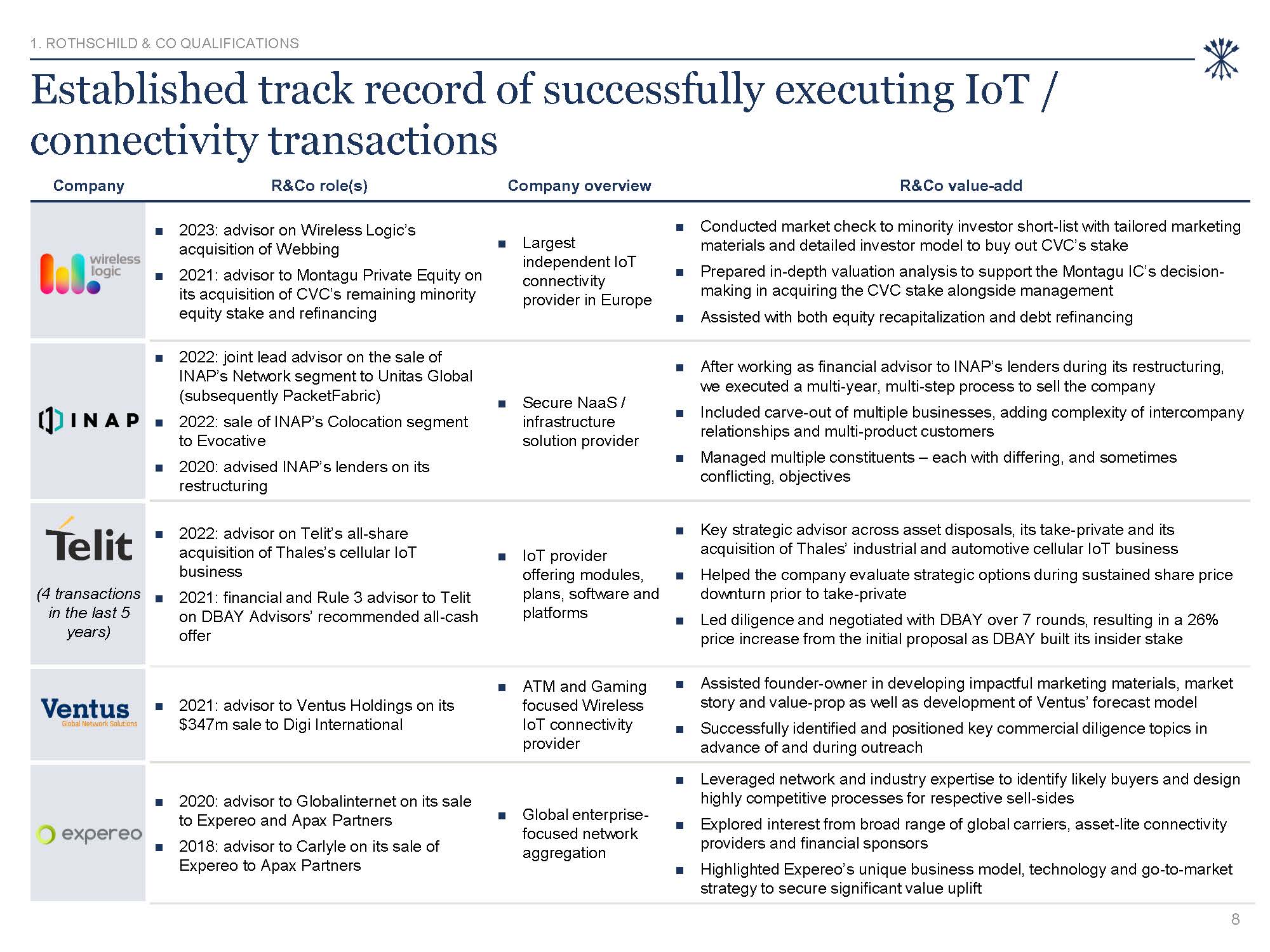 future. This presentation provides summary information only and is being delivered solely for informational purposes. Rothschild & Co does not provide legal, tax or accounting advice of any kind. By receipt of this presentation, the