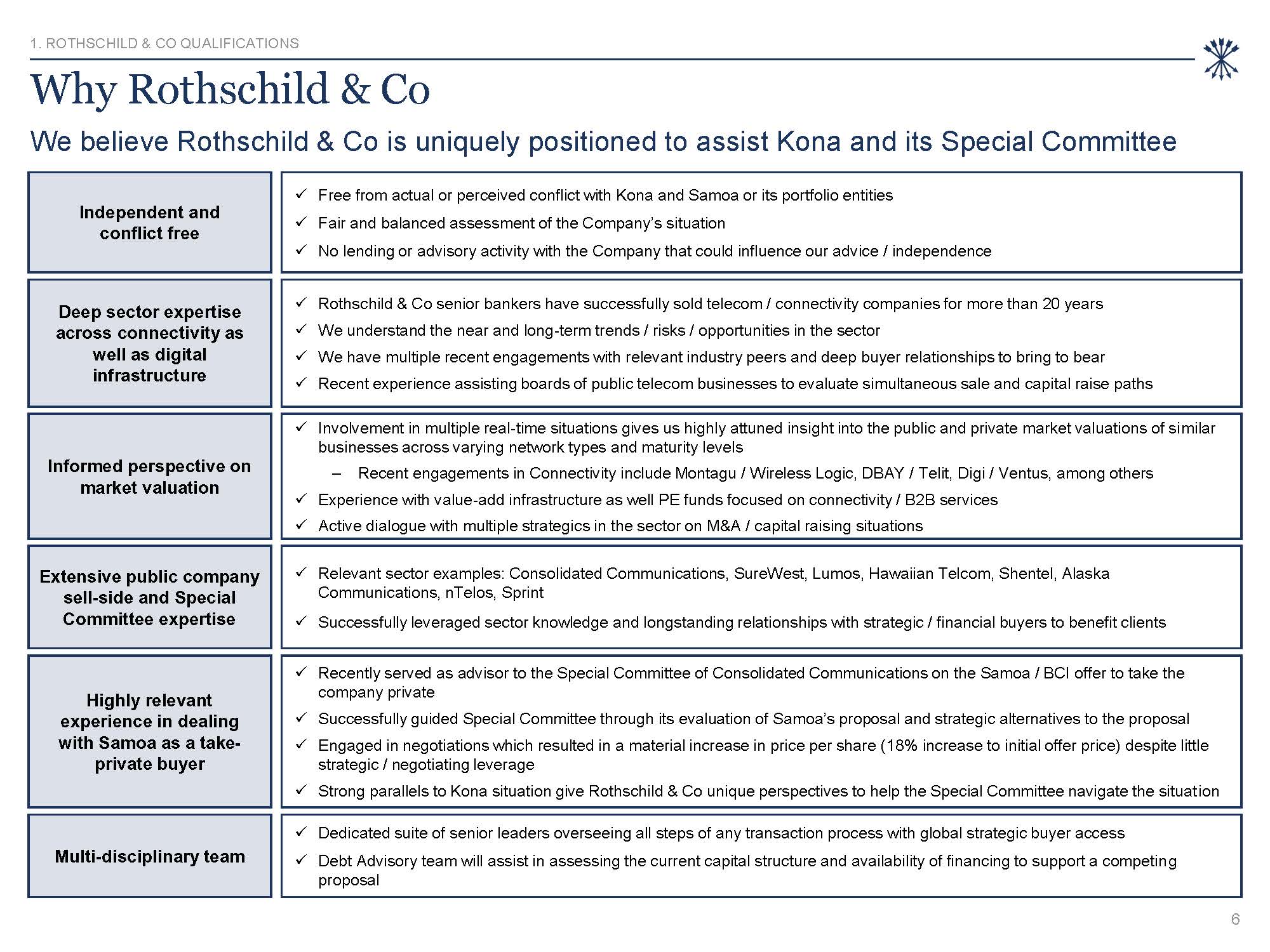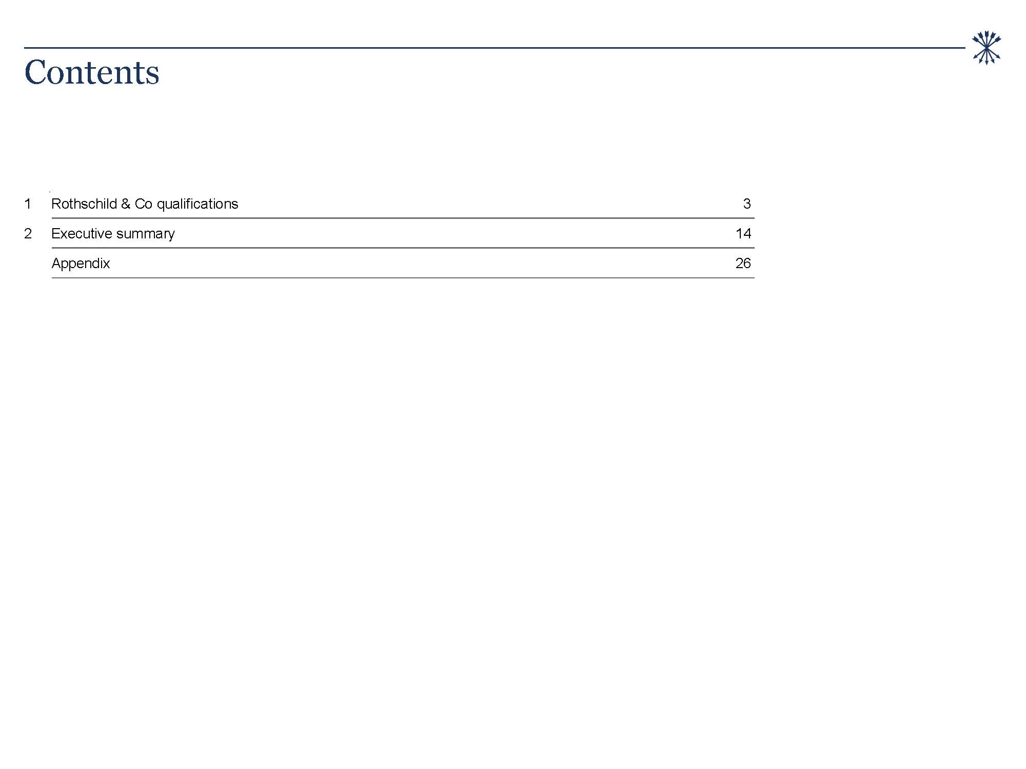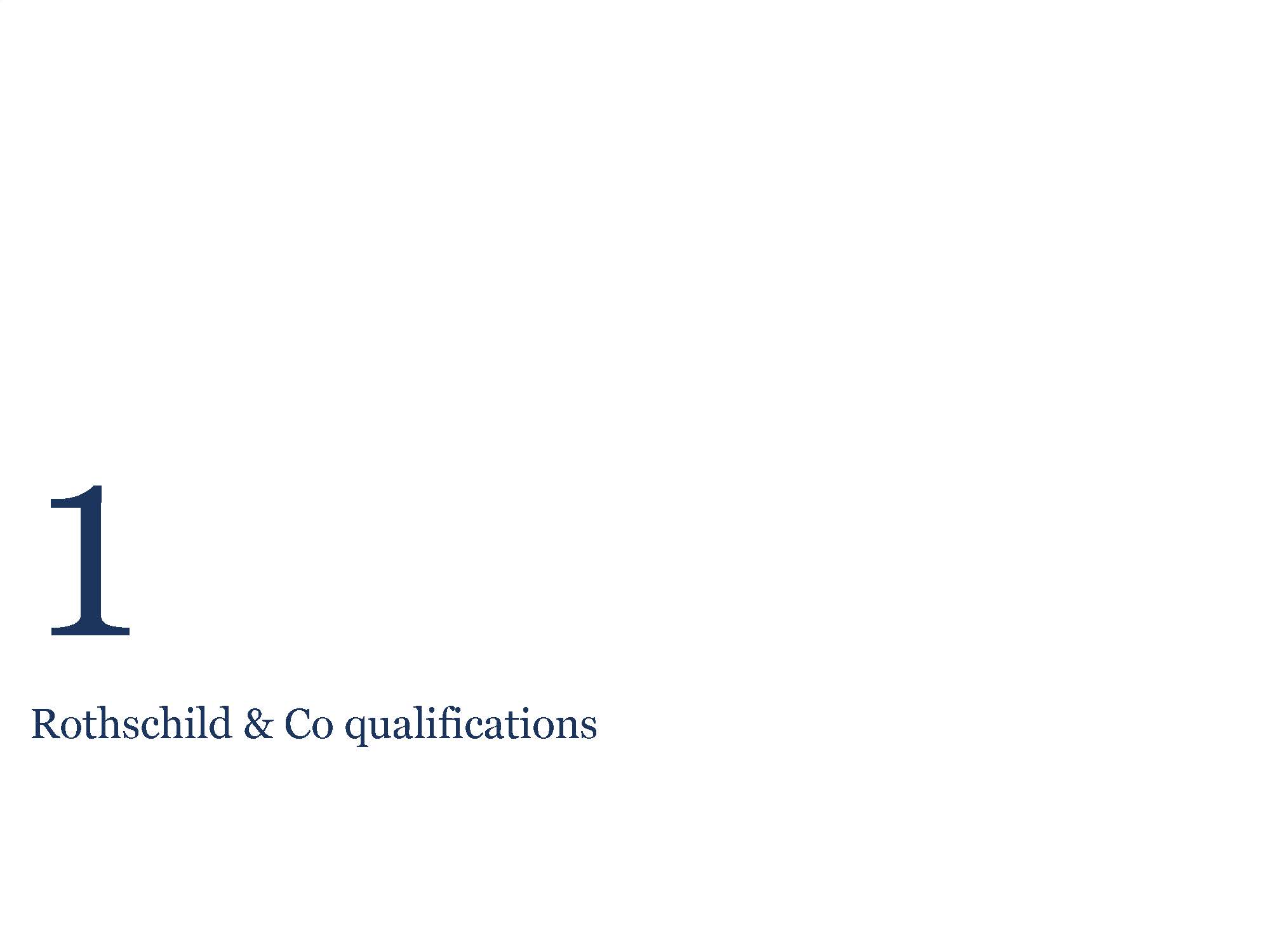 of conduct. Nothing contained herein shall be deemed to be a recommendation from Rothschild & Co to any party to enter into any transaction or to take any course of action. This presentation is not intended to provide a basis for