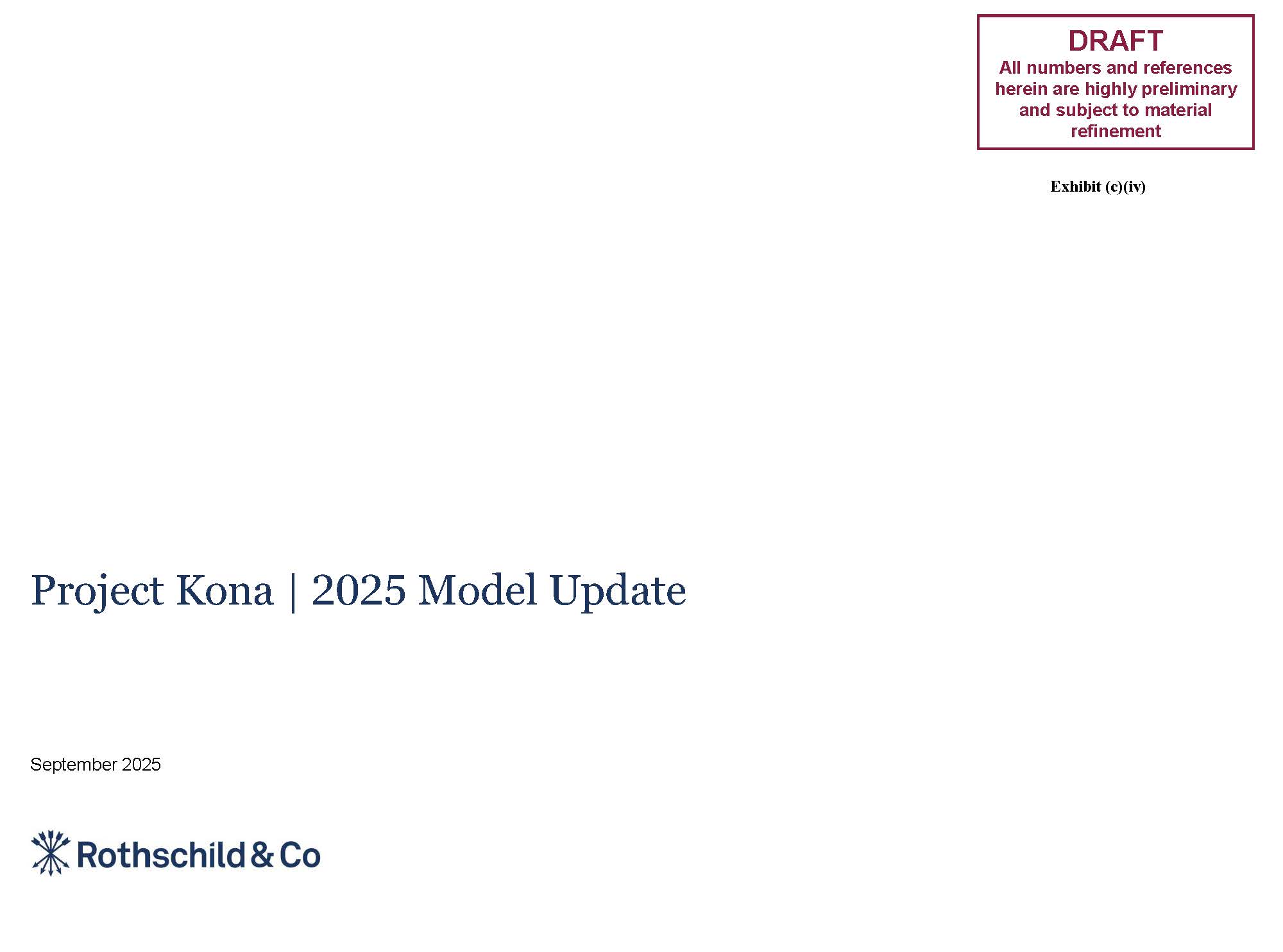 market and other conditions and circumstances existing and disclosed to Rothschild & Co as of the date hereof, all of which are subject to change. Rothschild & Co does not have any obligation to update, bring-down, review or reaffirm