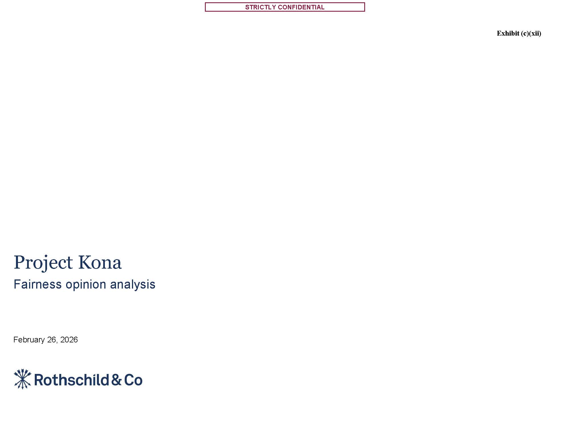 STRICTLY CONFIDENTIAL  Project Kona  Fairness opinion analysis  February 26, 2026  Exhibit (c)(xii)
