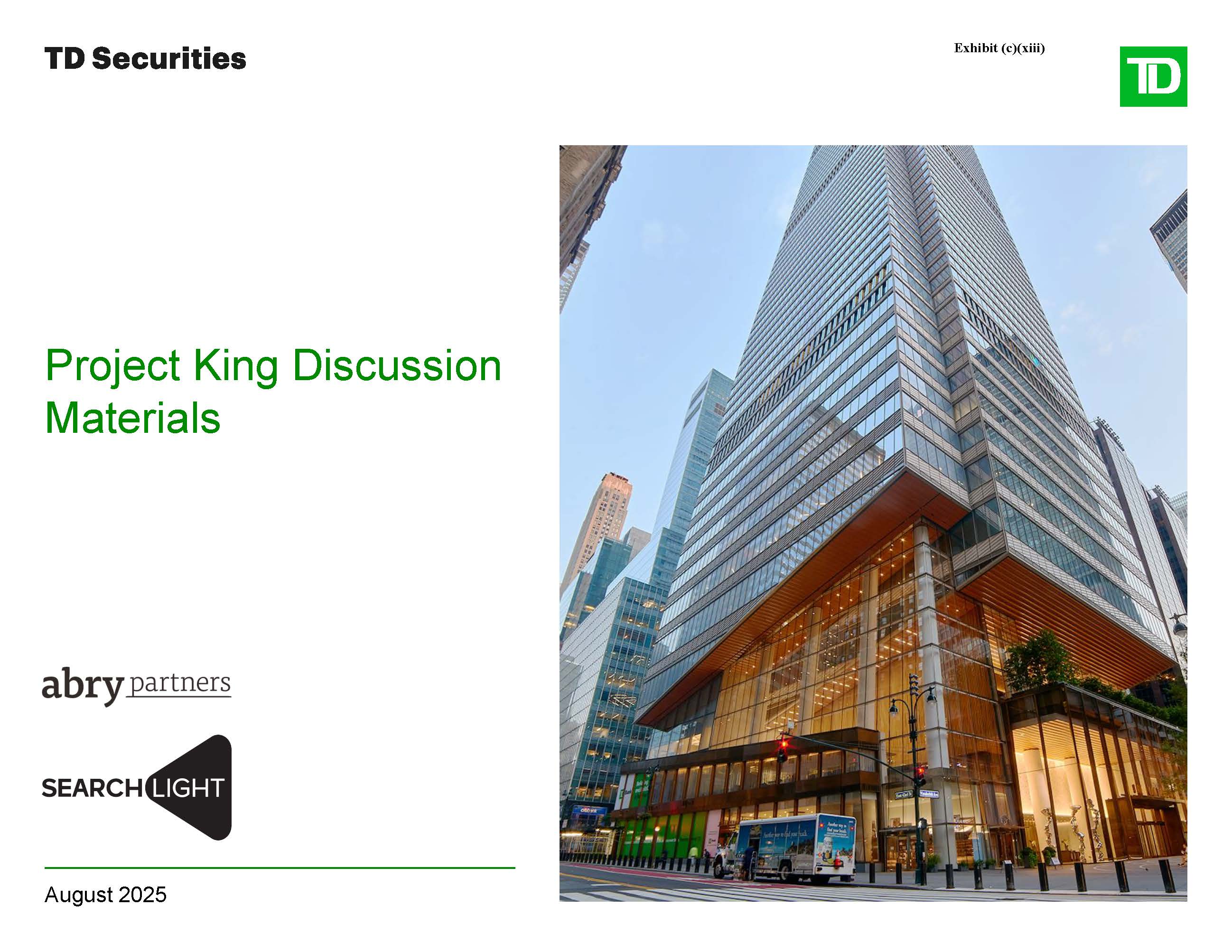 Project King Discussion Materials  August 2025  Exhibit (c)(xiii)