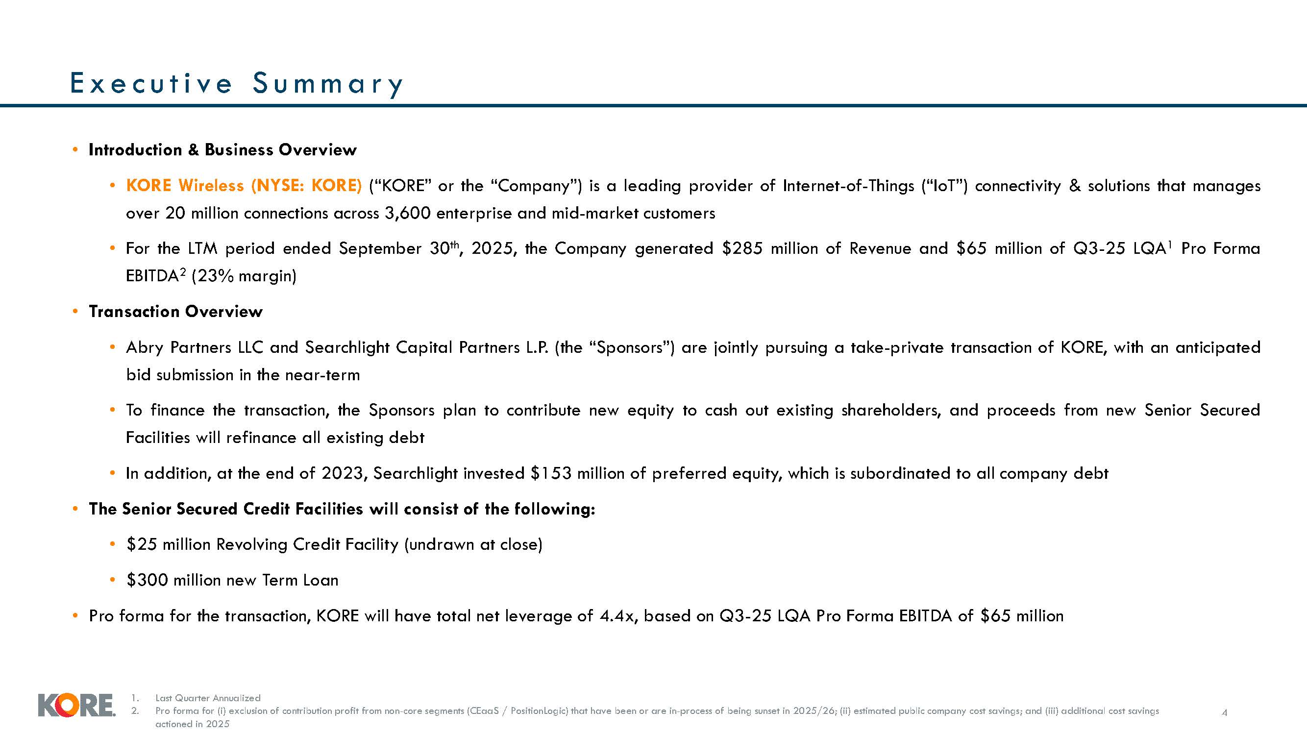 confidential and proprietary information and is solely for informational and discussion purposes in connection with the evaluation of a potential transaction regarding a business of the Company (the "Business"). This Presentation may not be