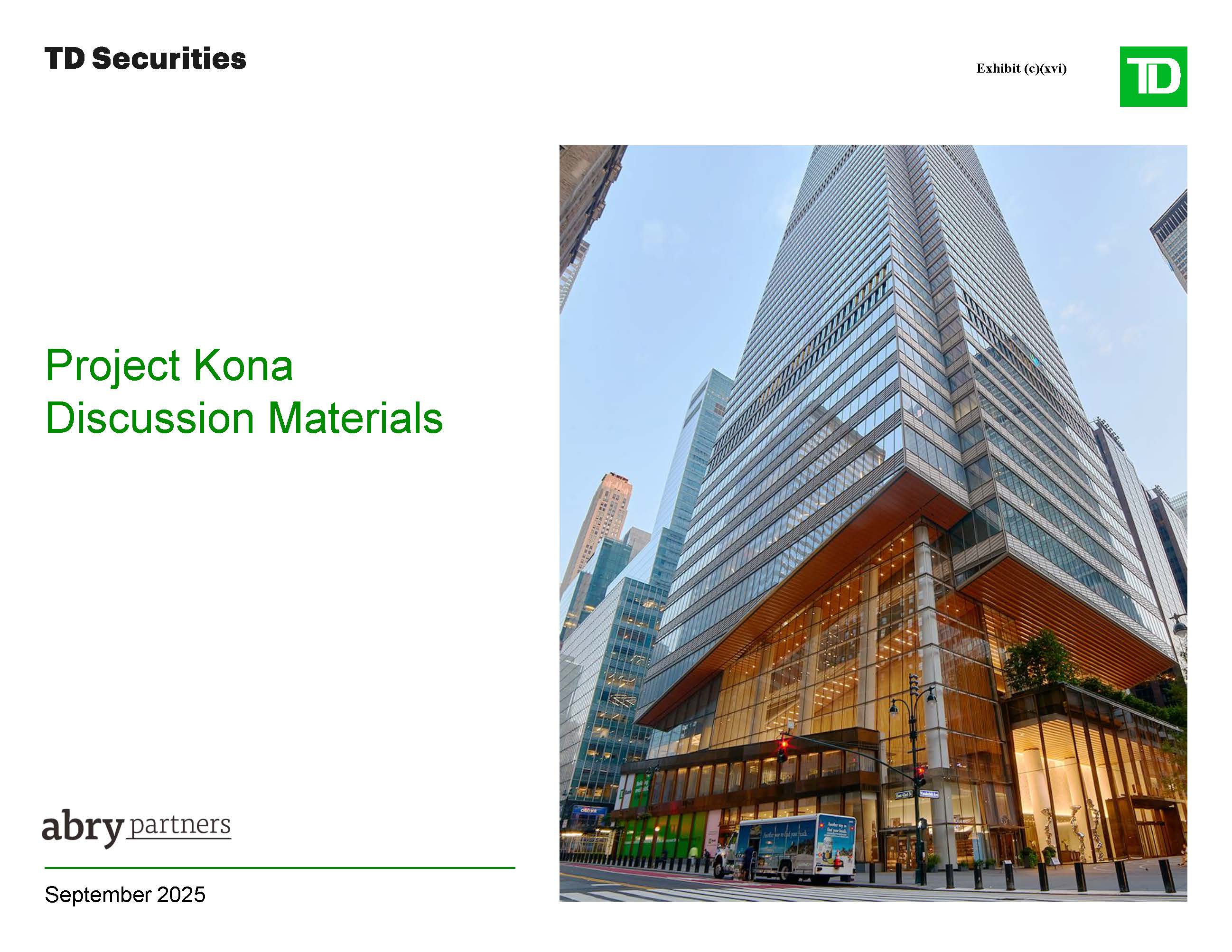 other conditions that TD Securities may deem appropriate. “TD Securities” is a trademark of The Toronto-Dominion Bank (“TD”) and represents certain investment banking, capital markets and wholesale banking activities conducted through certain