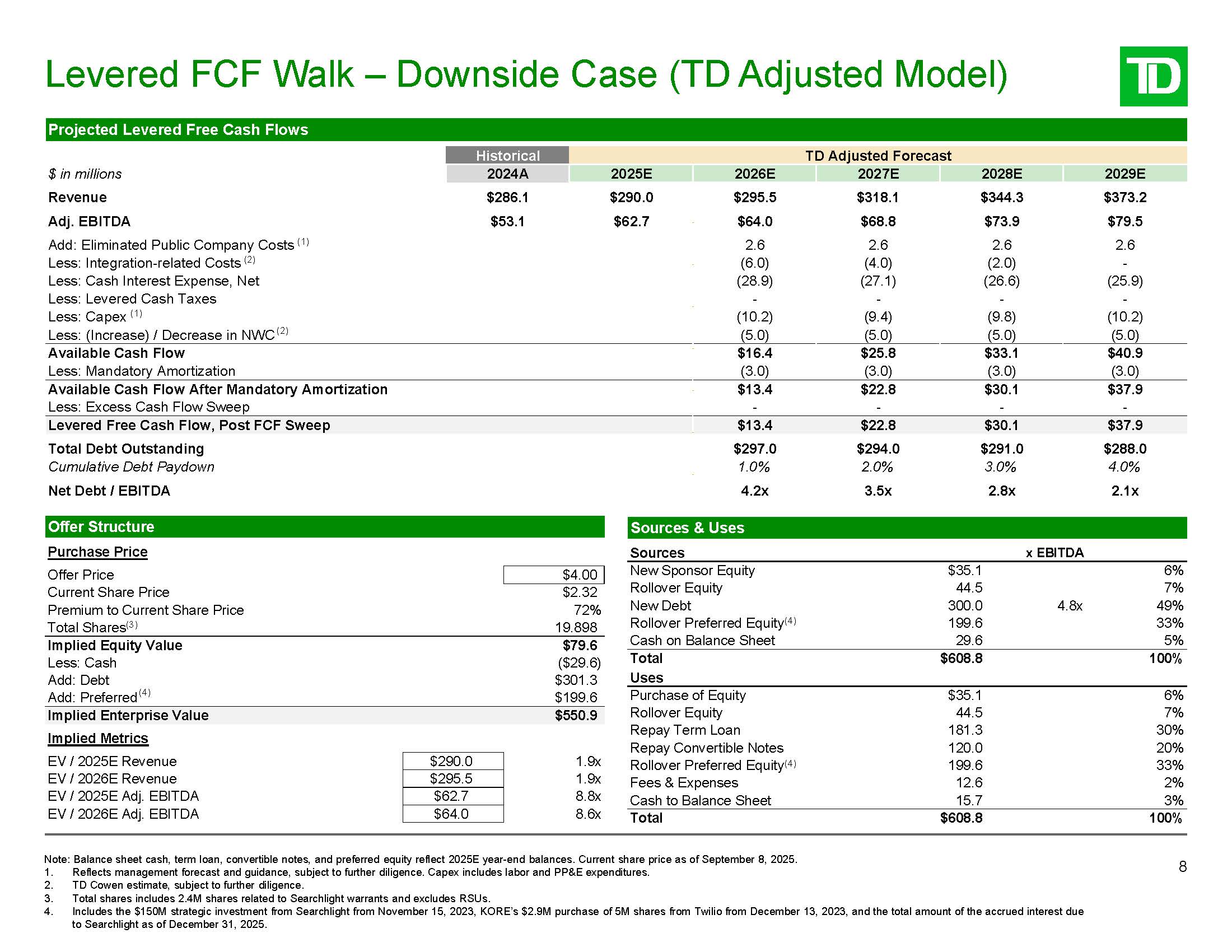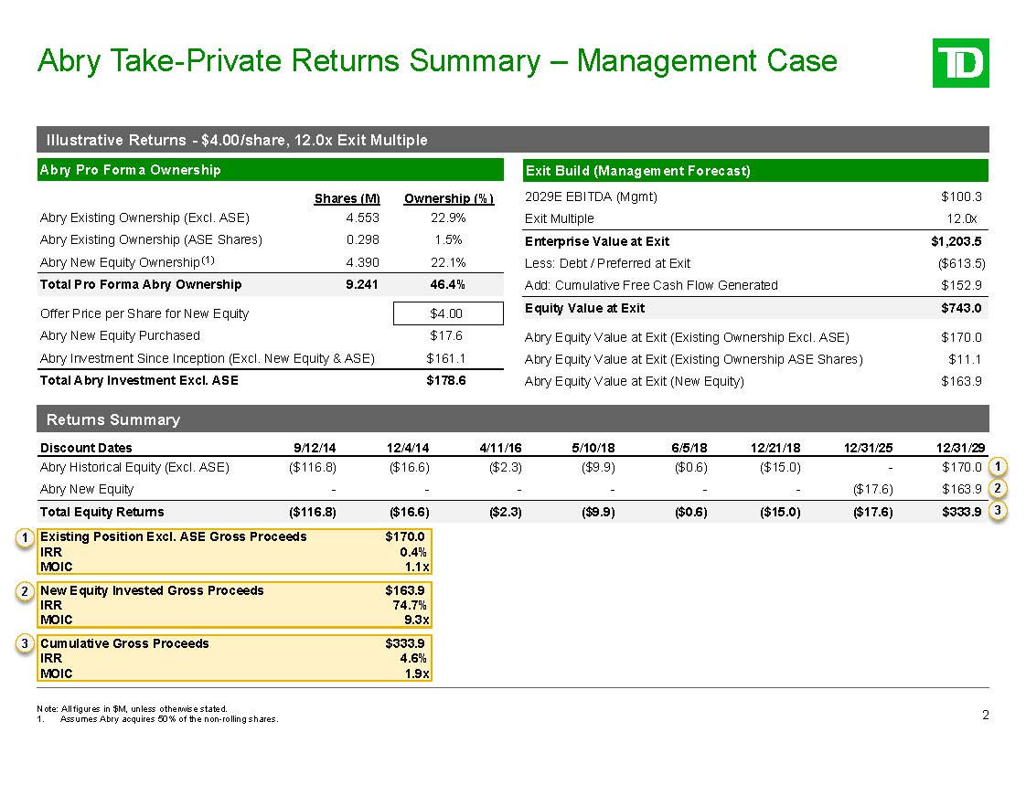 illustrative purposes only. In preparing the materials, TD Securities has relied upon documents and information prepared for or supplied to TD Securities by the Company and other sources, without independent verification by TD Securities. Any