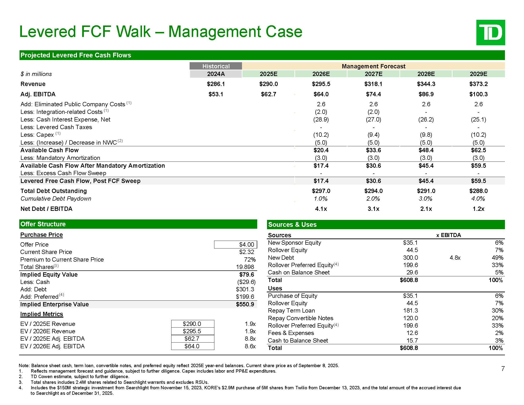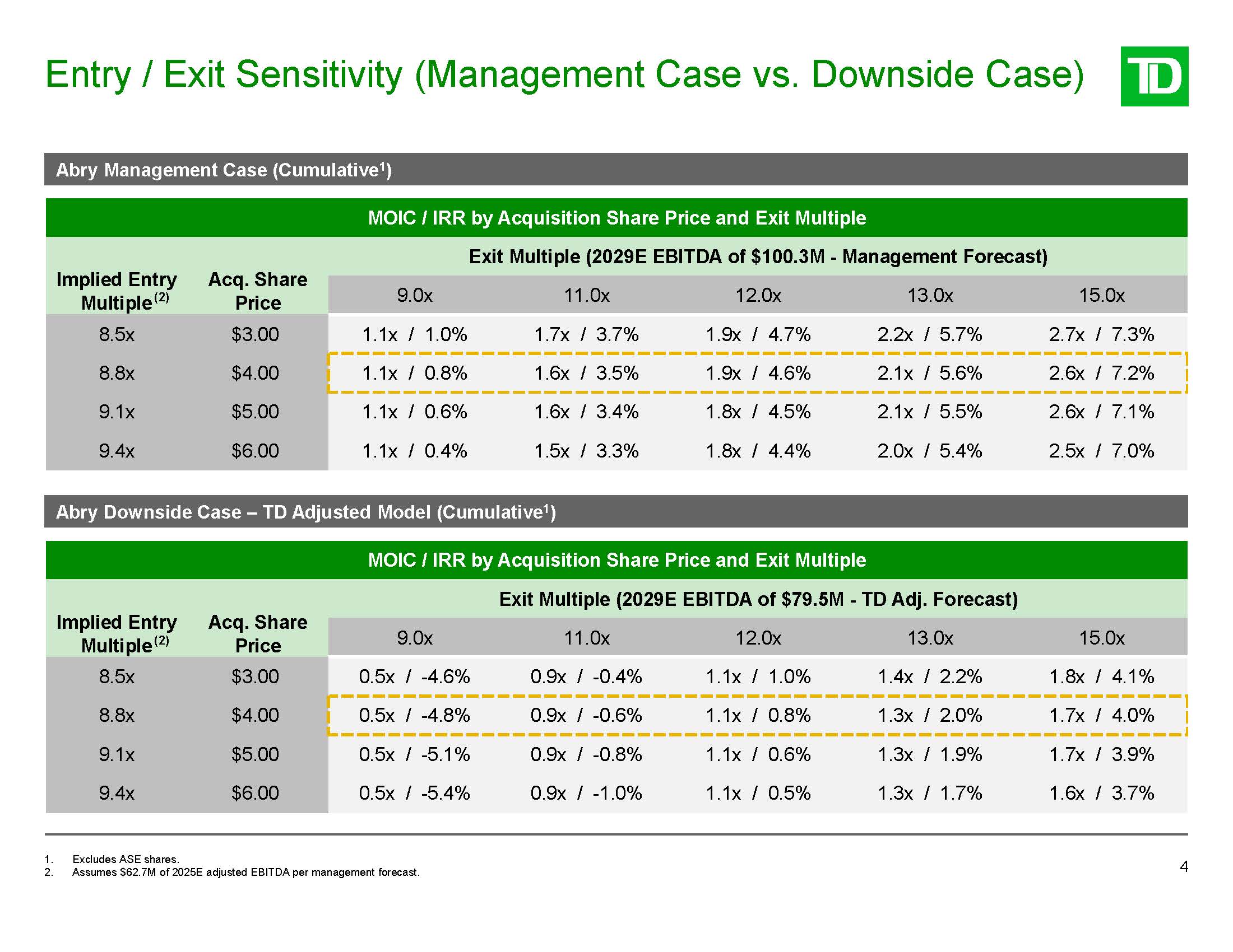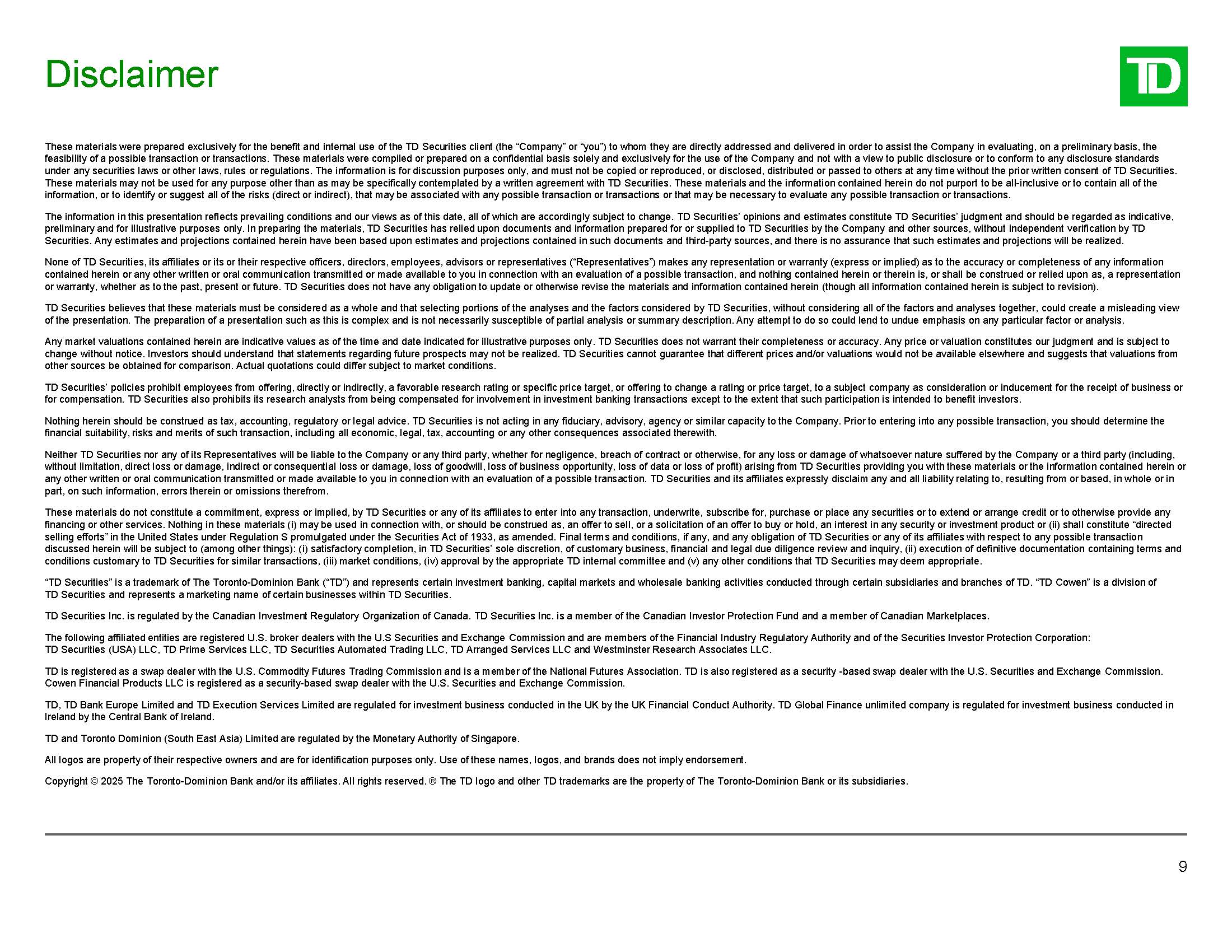 connection with an evaluation of a possible transaction. TD Securities and its affiliates expressly disclaim any and all liability relating to, resulting from or based, in whole or in part, on such information, errors therein or omissions